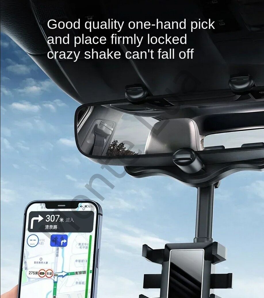 [Kolay kullanım]Araç telefonu tutucusu, kurulumu kolay bir otomatik ayar kelepçe koluyla donatılmıştır.Teleskopik kelepçe kolu, arabadaki sürücü koltuğunun üzerindeki dikiz aynasında bulunur; bu, kolayca kurulabilir ve düşmeden tamamen sabitlenebilir;