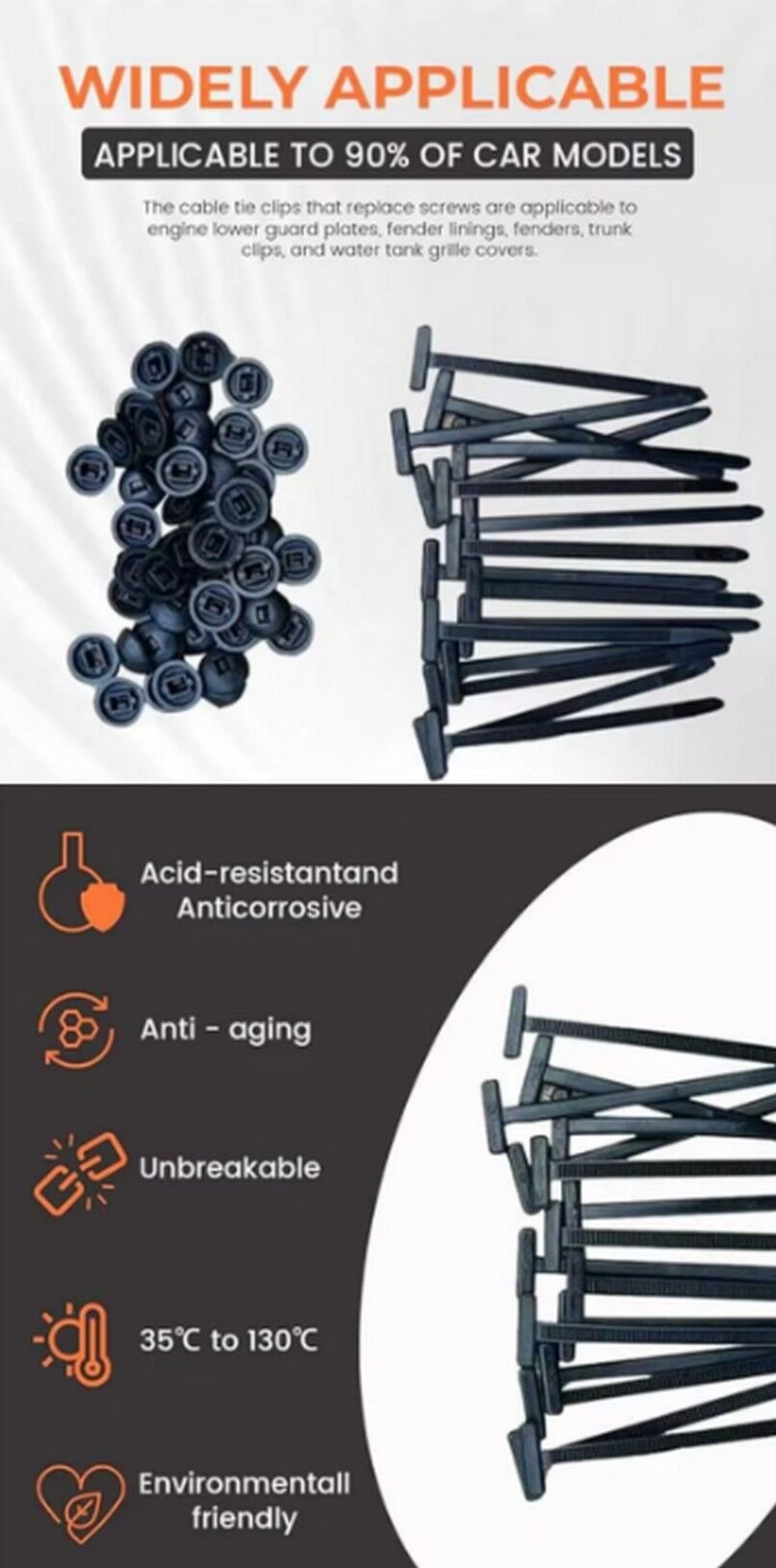 ????Zaman Tasarrufu ve Maliyet Etkinliği: Bu kablo bağı tokaları, vidaların ve klipslerin %90'ından fazlasını değiştirebildiği için, otomotiv bakımı ve onarımları için zaman tasarrufu sağlayan ve maliyet açısından etkili bir alternatif sunar. Bu da onları her araç sahibi veya kendin yap meraklısı için olmazsa olmaz bir araç haline getirir.