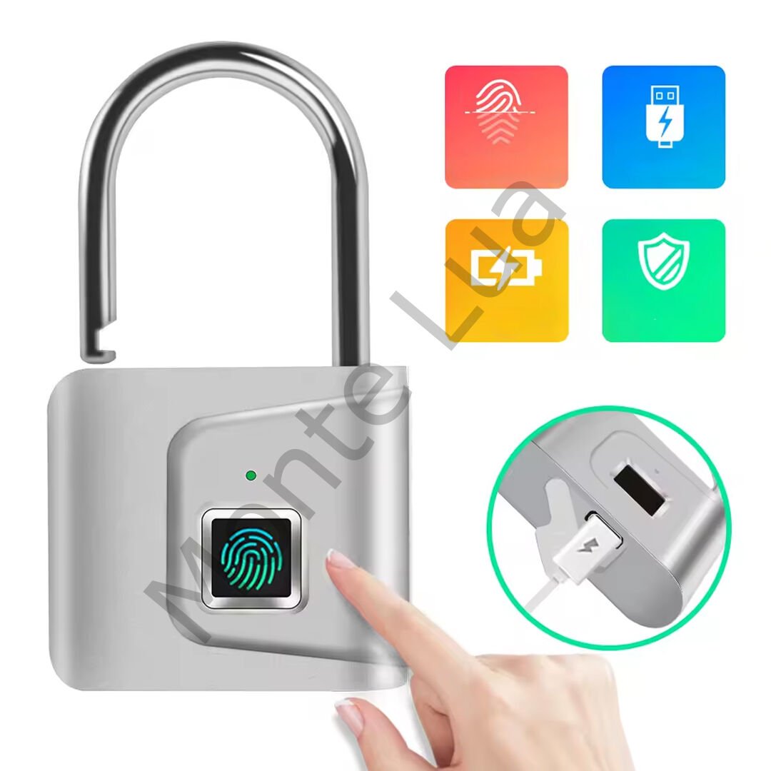 Anahtarsız Parmak İzi Güvenlik Kilidi Asma Kilit Şarjlı, parmak tanıma, akıllı biyometrik hırsızlık koruma kilidi, bagaj çantası, fitness stüdyosunda kilitli bölme,