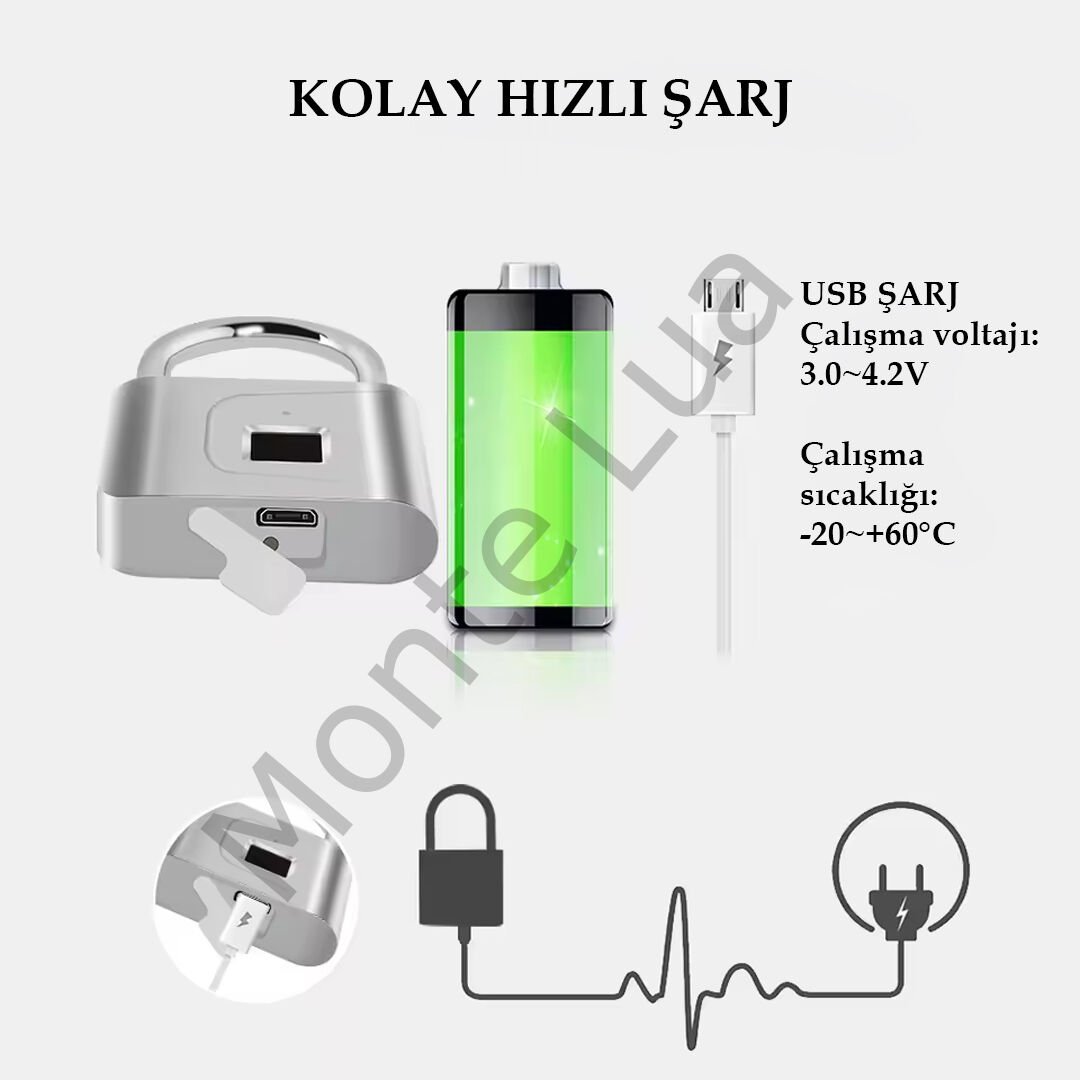 Anahtarsız Parmak İzi Güvenlik Kilidi Asma Kilit Şarjlı Özellikleri