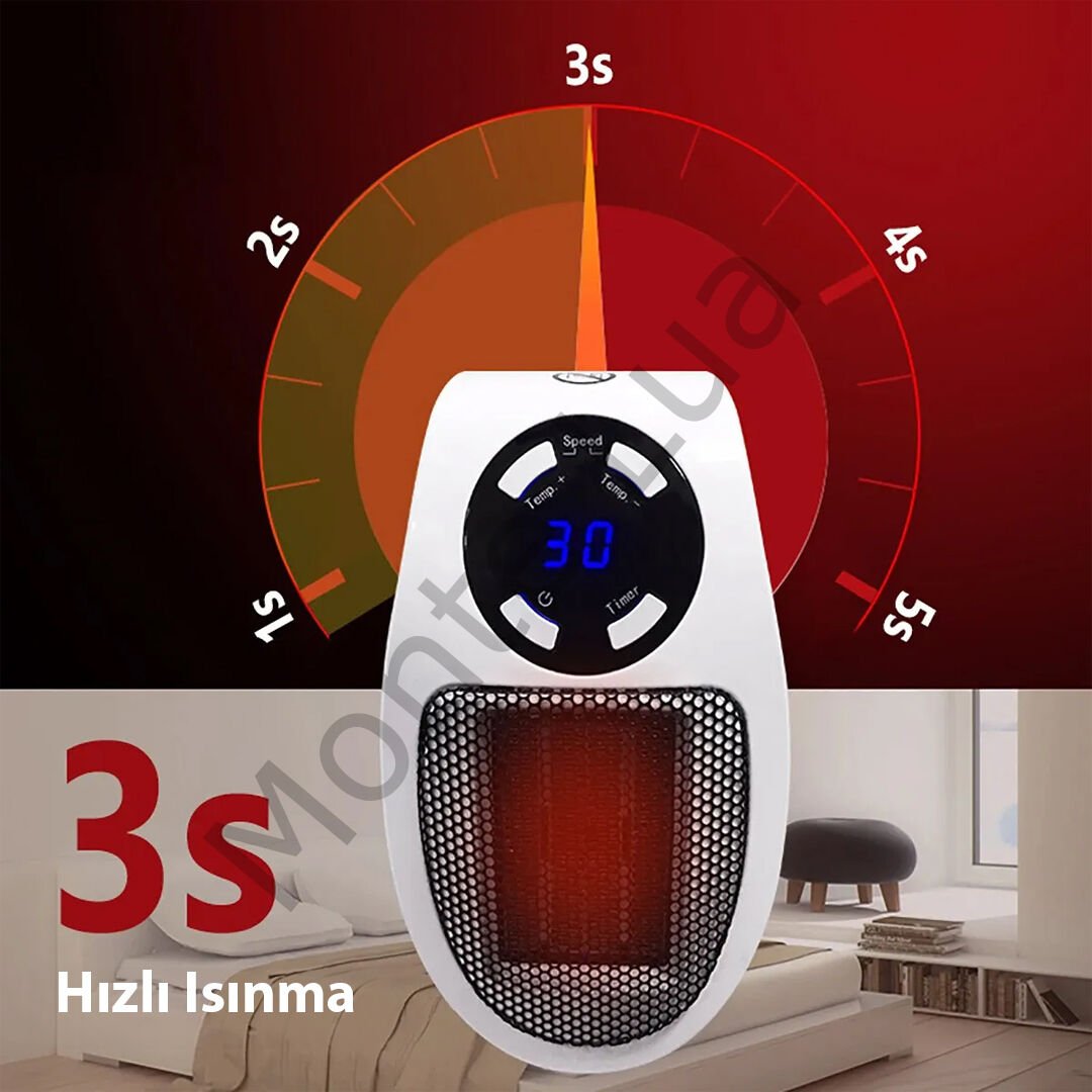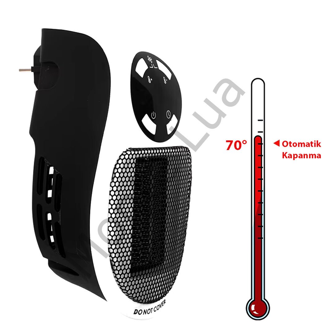 Kompakt ve taşınabilir tasarımı ile hızlı ısınma sağlayan ve enerji verimliliği sunan modern bir ısıtıcı çözümüdür. 500 Watt gücü ile bulunduğu ortamdaki havayı hızla ısıtırken, aşırı sıcaklık ve yüksek akım koruma özellikleri sayesinde güvenli bir kullanım sunar. Priz tipi yapısıyla herhangi bir yere monte edilebilir ve taşınabilirliği ile evin her alanında kolayca kullanılabilir. Uzaktan kumanda ile zamanlayıcı, sıcaklık ve hız kontrollerini kolayca yönetebilir, ürün üzerinde bulunan dokunmatik butonlarla da sıcaklığı ayarlayabilirsiniz.