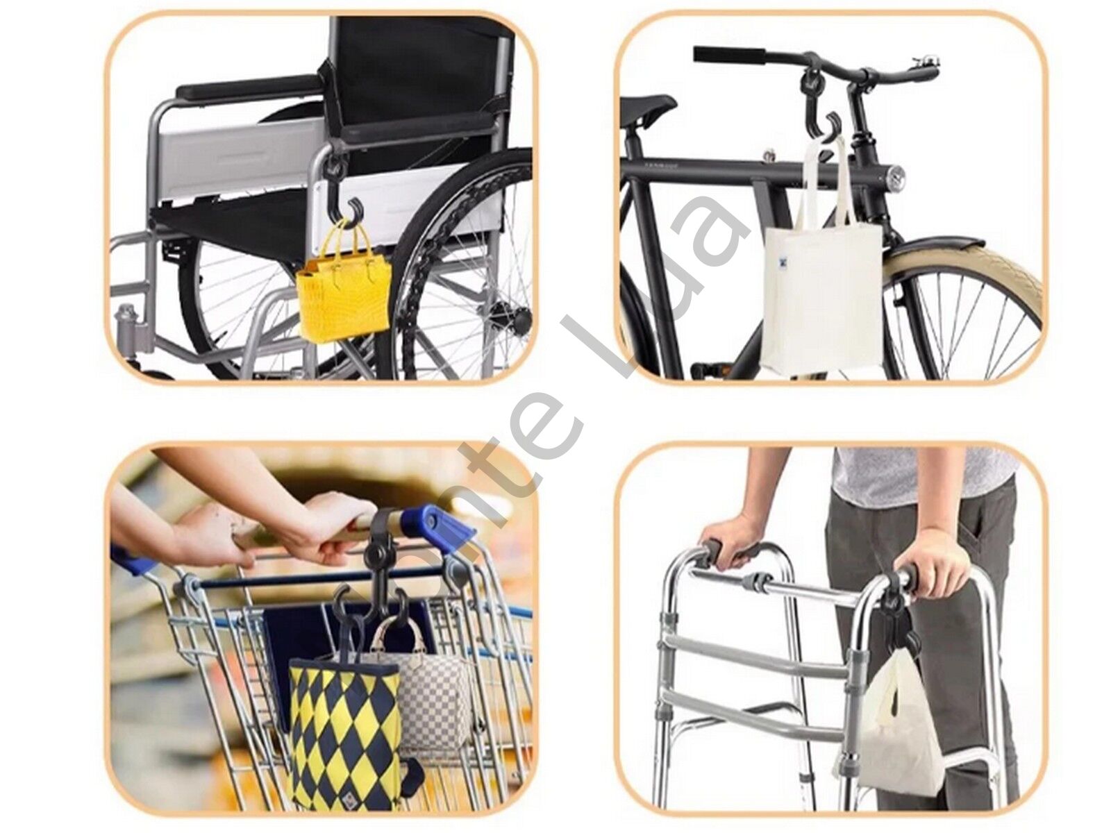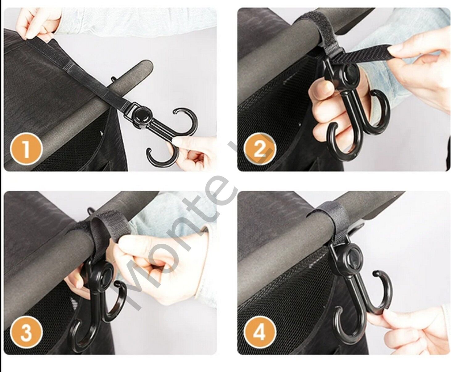 360 derece dönebilen kancalarıyla kolayca kurulabilir ve kullanılabilir. Bebek bezi çantası, cüzdanlar, oyuncaklar, alışveriş çantaları gibi çeşitli eşyaları asmak için idealdir.
