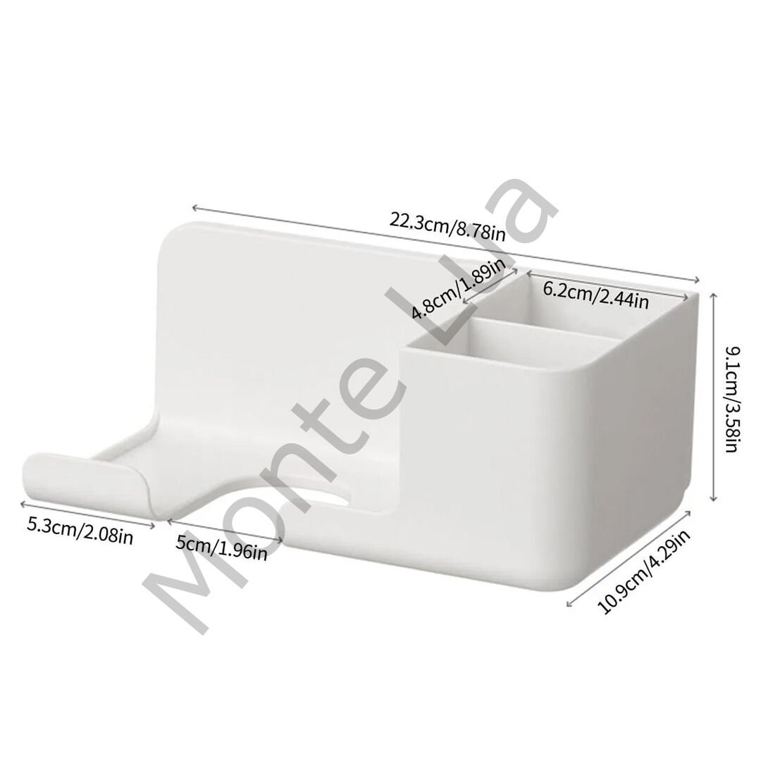 - Çok Fonksiyonlu: Sabunluk, diş fırçası ve saç kurutma makinesi için özel bölmeler.