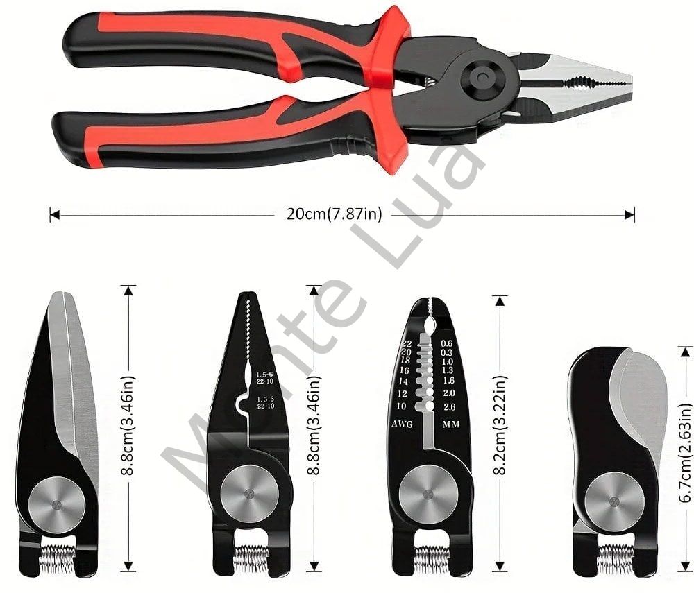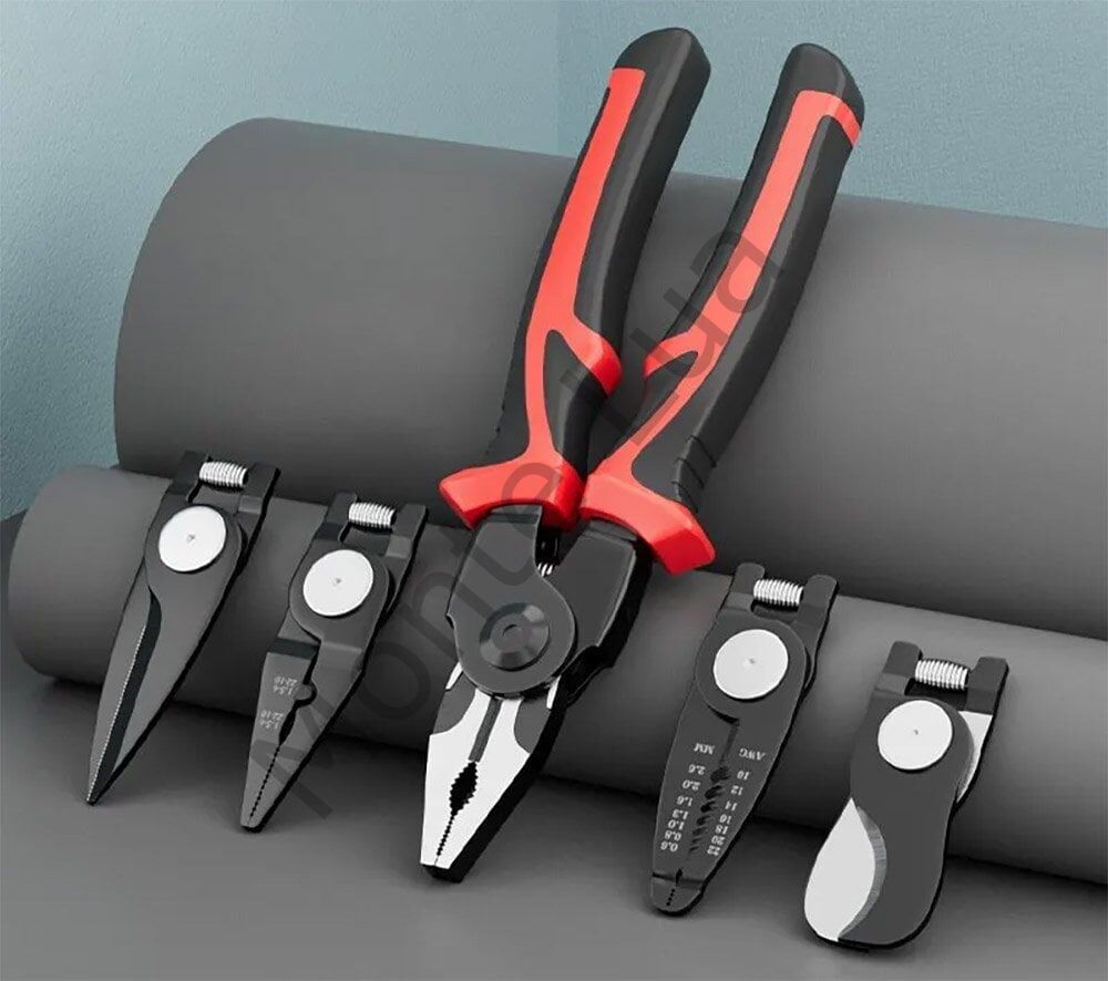 Çok Uçlu Pense, çeşitli onarım ve bakım ihtiyaçlarını karşılamak için mükemmel bir seçenektir. 5 farklı başlıkla bir arada gelen bu set, tel sıyırıcılar, kıvırma penseleri, kablo kesiciler, lehimleme penseleri ve tel kesiciler gibi çeşitli işlevler sunar.