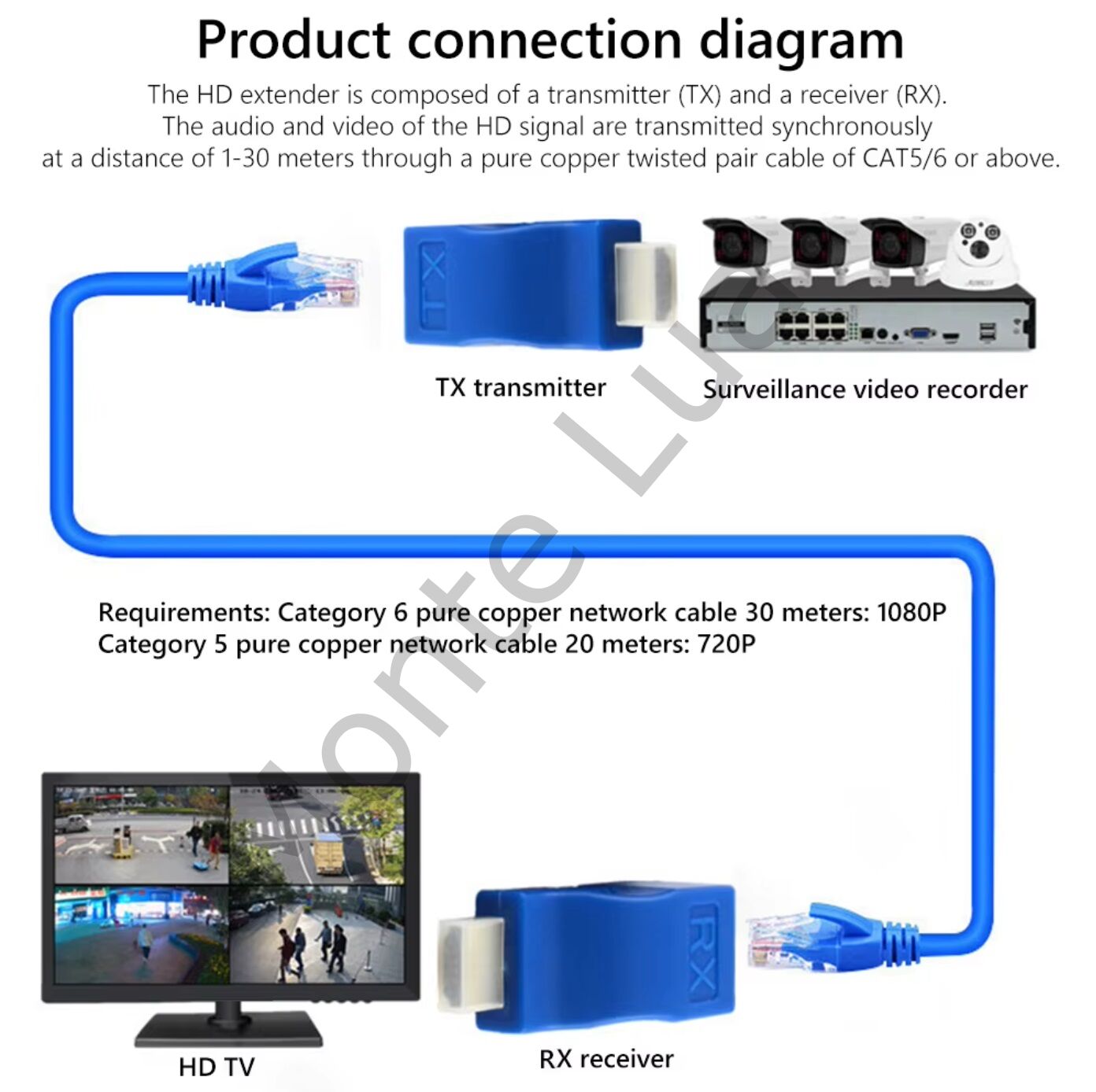 HDMI To Cat5-Cat6-Cat7 Extender 30 Metre Uzatıcı, 4K HDMI Extender, Cat6 Hdmi Görüntü Aktarma,