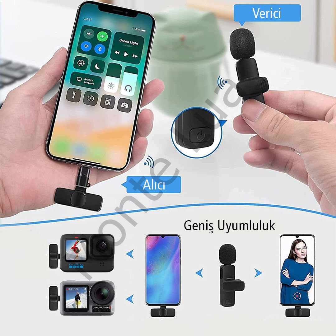- Aksesuarlar: Alıcı, Verici, Lightning Çevirici, Mikrofon Sünger, Şarj Kablosu (Type-C), Kullanım Klavuzu