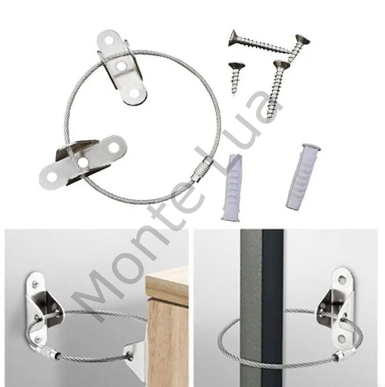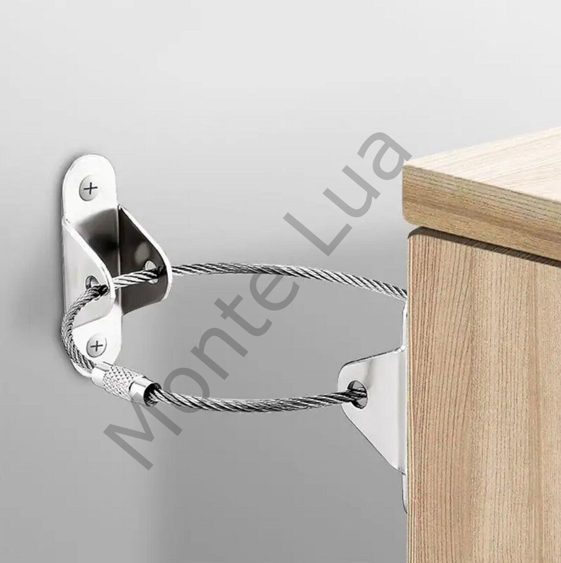 Mobilya Devrilme Önleme Kiti, Depreme Karşı Eşya Sabitleme Aparatı, Paslanmaz Çelik Duvar Bağlantı Kiti