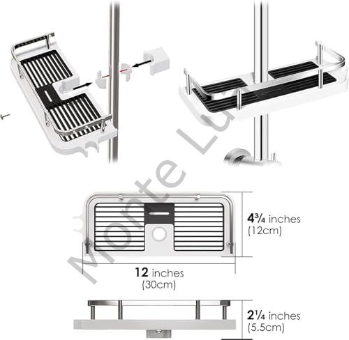 Monte Lua Banyo Rafı, Duş başlığı tutucusu, Dayanıklı Şampuan ve Sabunluk Rafı, Banyo Düzenleyici, Duş Rayı için Gümüş, Organizer, Çok Amaçlı