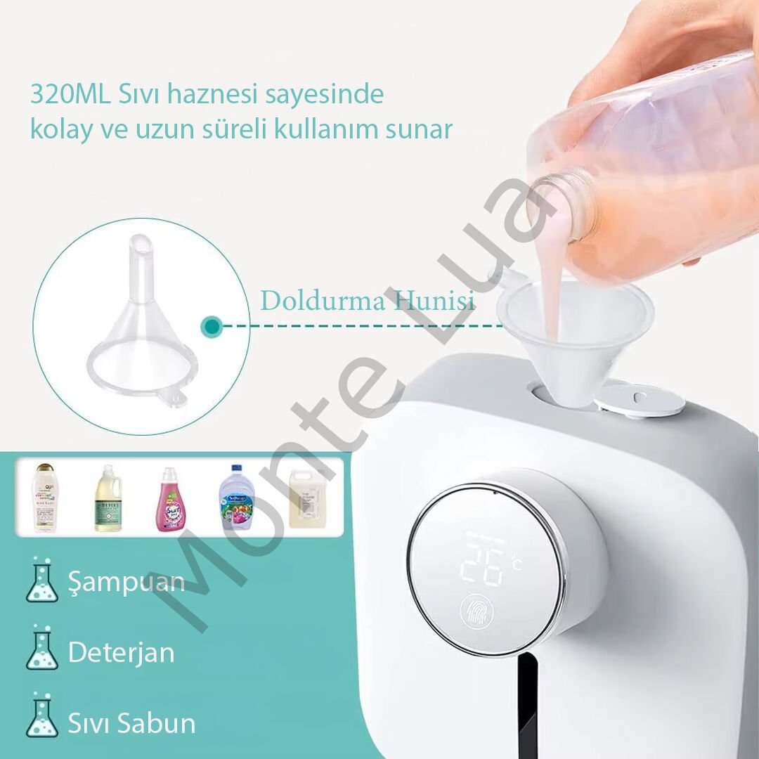 Sensörlü Otomatik Sıvı Sabunluk Otomatı, hijyen ve pratik kullanım açısından mükemmel bir çözüm sunar. Bu sabunluk, 1600mAh dahili lityum bataryası ile USB üzerinden şarj edilebilen ve sensörlü çalışması sayesinde ellerinizi değdirmeden sıvı sabunu otomatik olarak sunan bir cihazdır. 320 ml sıvı haznesi sayesinde uzun süreli kullanım sağlar ve doldurma işlemi oldukça kolaydır. Hem sıvı sabun, şampuan hem de deterjan gibi farklı temizlik ürünleri ile kullanılabilir. Modern ve kompakt tasarımıyla hem ev hem de iş yerlerinde rahatlıkla kullanılabilir.