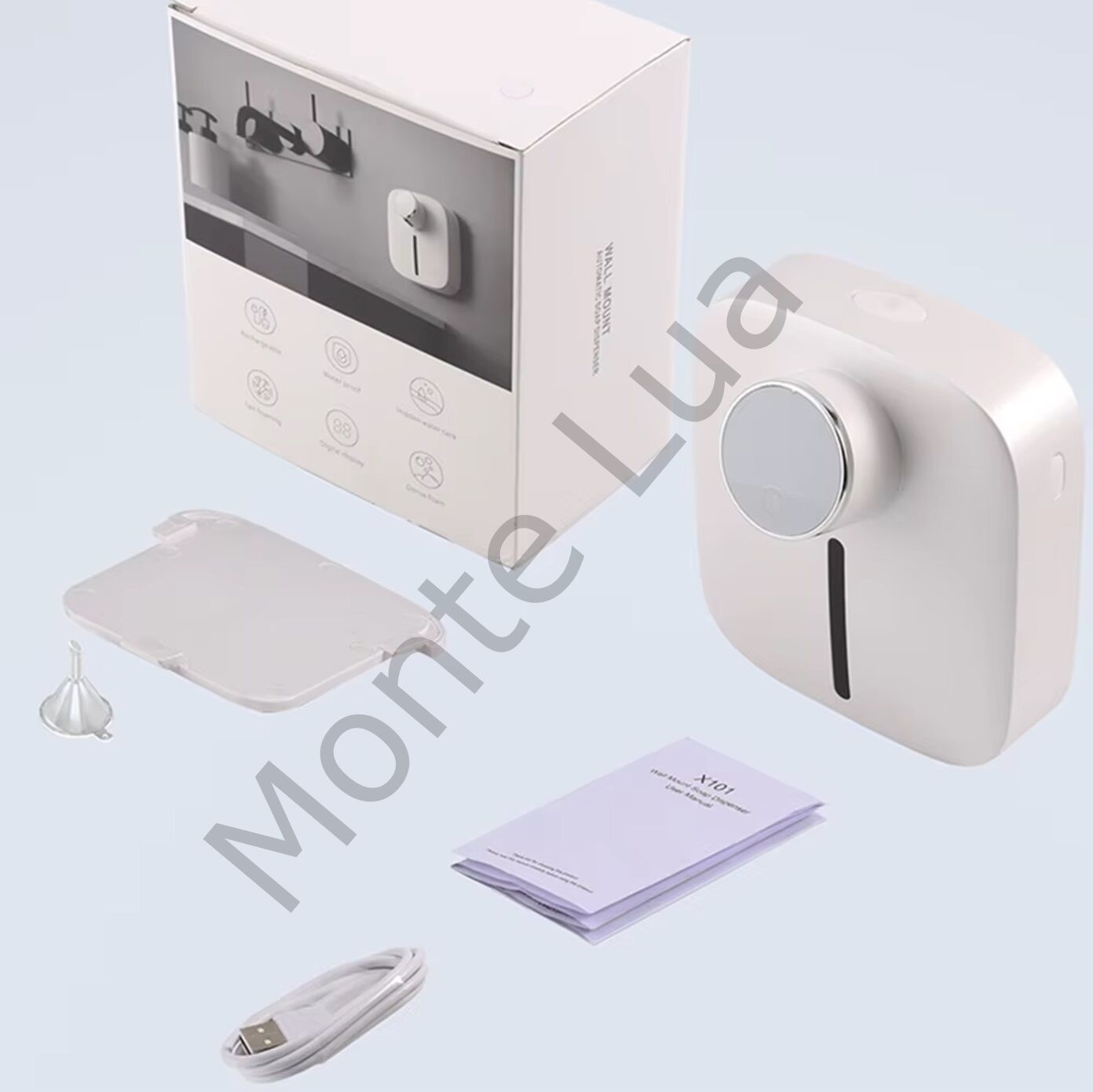 - Paket İçeriği: Sıvı Sabun Otomatı, Doldurma Hunisi, Sabun Taşıma Bidonu 320ML, Duvar Askı Bağlantısı, 2 Adet Çift Taraflı Kuvvetli Yapışkan