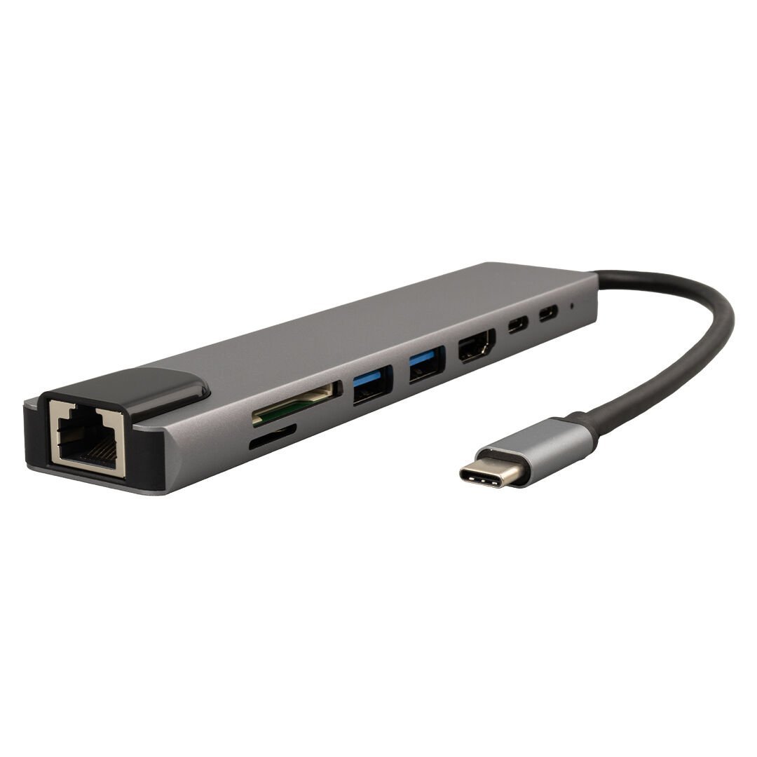 RACA, Type-C 8in1 HDMI Çok Fonksiyonlu USB 3.0, Dock Station, Tf-t, SD, Usb2.0, HDMI, Usb-C, PD, RJ45,