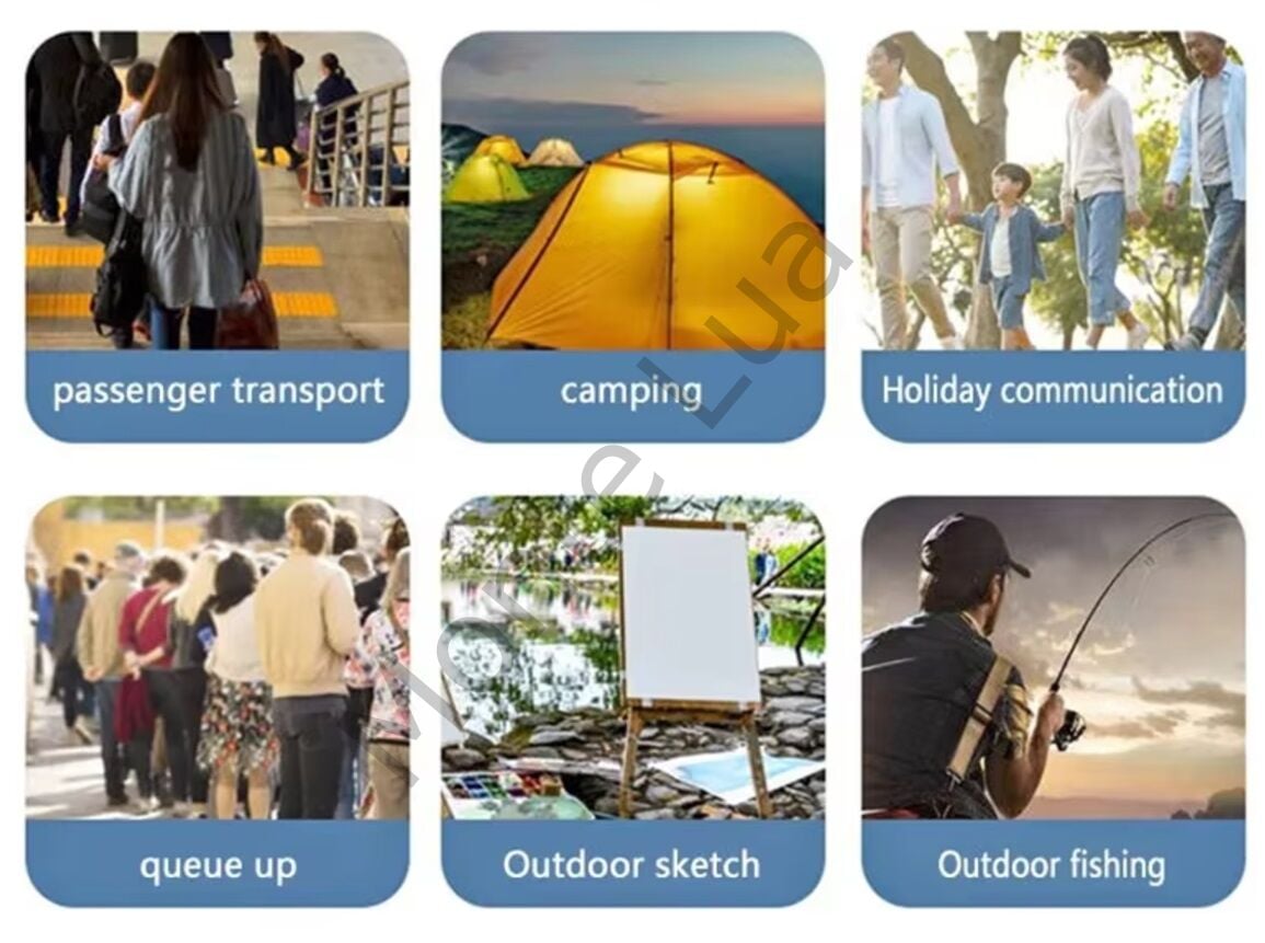 - Uygulanabilir Çevre: Kamp, piknik, parklar, açık hava, süpermarketler, evler ve günlük kullanım