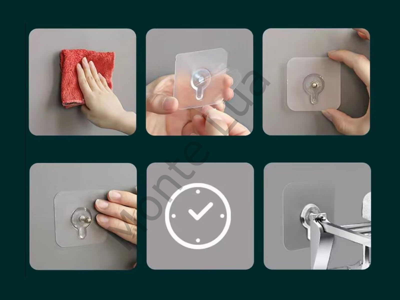 - Kanca çeşitli duvar yüzeyleri için uygundur; boyalı yüzey, mermer yüzey, ahşap taneli, şeffaf cam, buzlu cam, sert plastik yüzey, bu pürüzsüz ve pürüzsüz duvarlar sıkıca sabitlenebilir.